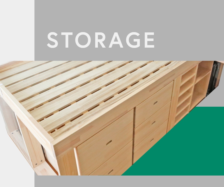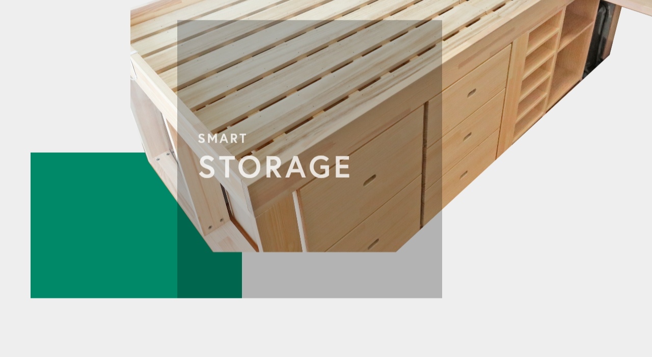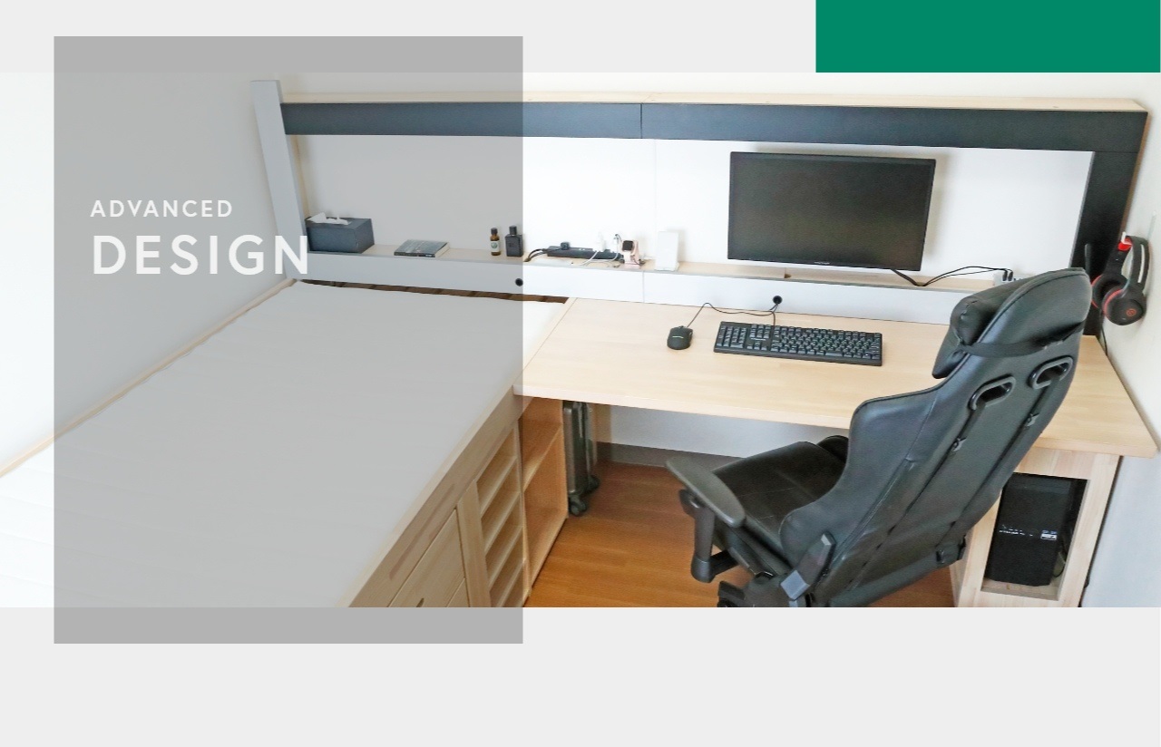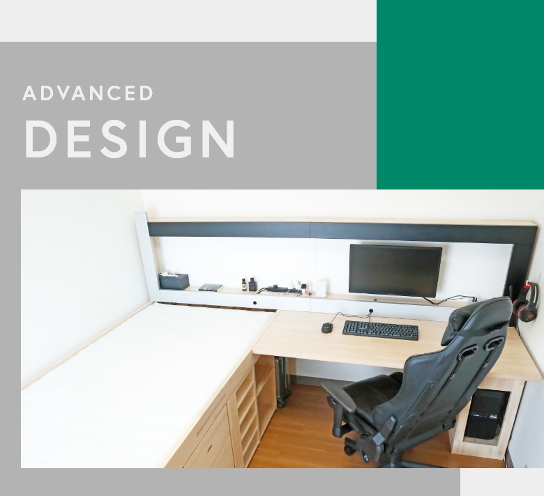 「部屋が狭くて家具が置けない」、「収納スペースが足りない」という悩みもWEARELUCK のルームキットが解決。デスク、収納、ベッドを効率良く配置しながら、最大限の収納を確保できるように設計されているので、限られた空間を有効活用できます。